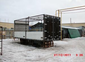 - При замене задней сдвижной шторки фургонов распашными воротами на грузовик